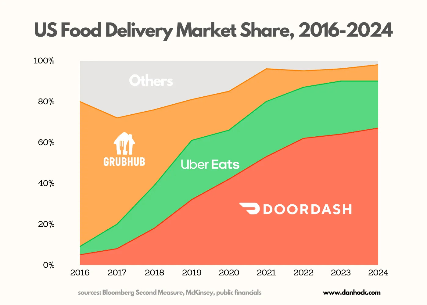 The business school version of why DoorDash won is that they had the right strategy. The Silicon Valley hustle culture version is that they out-executed everyone else. The financial markets version is that they got lucky. The reality is that you can't understand what happened without all three perspectives.